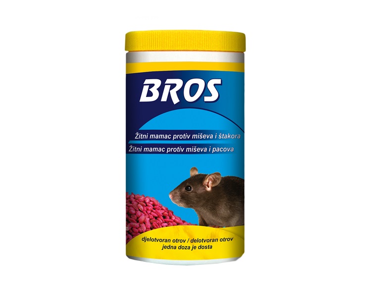 Žitni mamac za suzbijanje miševa, pacova i drugih glodara. Biocidni proizvod-rodenticid za opštu upotrebu. Visoku efikasnost proizvoda garantuje atraktivan ukus za glodare, djelovanje s kašnjenjem od 4-5 dana nakon aplikacije. Proizvod sadrži supstancu koja sprečava da ga slučajno ne uzimaju kućni ljubimci.